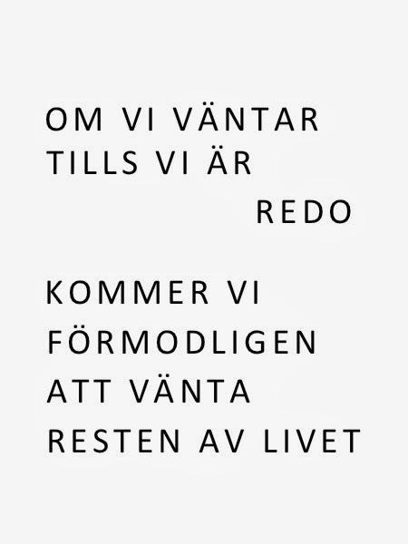 Och om jag måste välja blur det "om du väntar tills du är redo". För så säger m så ofta om Alma. Att han är så innerligt lycklig att hon blev till lite i förtid. För hann hade aldrig kännas sig redo. Och a är det bästa som hänt honom så det är ju för väl att hin kom 🙂