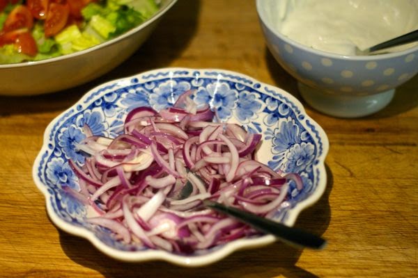 Jag gillar lök. Det är väldigt få varma rätter som jag lagar som inte har lök som start. Varma rätter ja, för då tillagas löken och blir mild och god. Men rå lök, nej det gillar jag inte vidare mycket. Därför brukar jag picka lök till sallader och liknande maträtter. Om du inte provat så gör det!