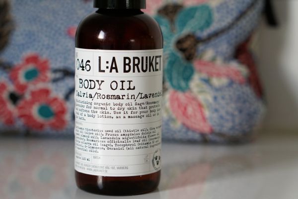 Det är sällan jag packar träningsväskan nu för tiden. De flesta träningspass sker här hemma, antingen i källaren eller ute i skogen. När jag väl åker iväg och tränar byter jag oftast om och duschar här hemma. När jag väl packar träningsväskan så är det bara de mest nödvändiga sakerna som får hänga med, som träningskläder, skor, handduk och necessär. Om det finns möjlighet att basta så ser jag till att få med peeling och kroppsolja också så jag kan lyxa till det lite extra. Att smörja in sig med en kroppsolja i bastun är helt underbart! Min favorit är Lilla brukets kroppsolja med salvia, romarin och lavendel.