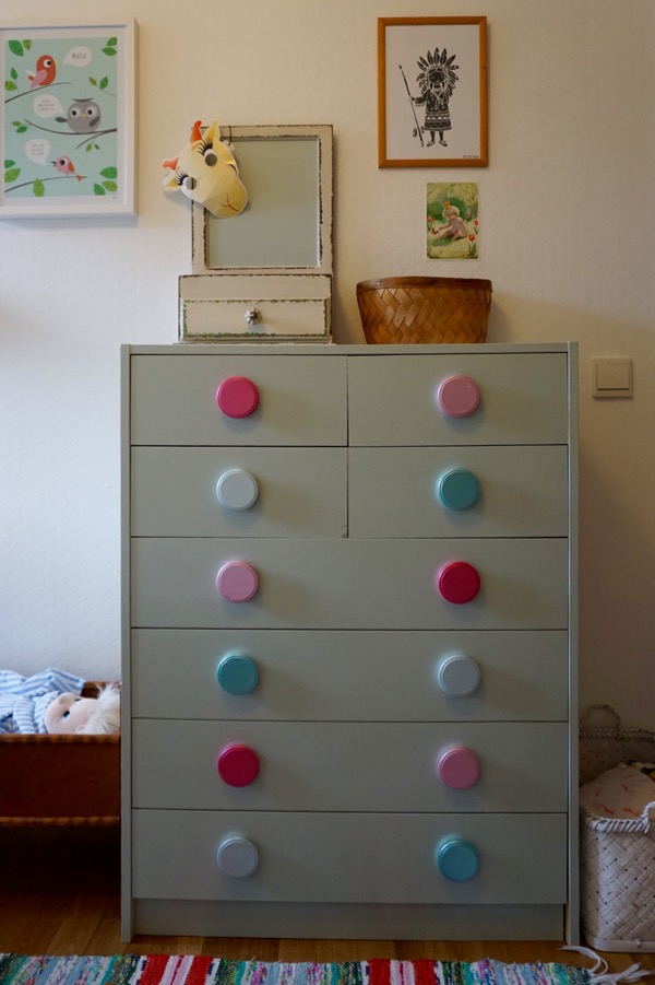 Medan maken sorterat och fixat i källaren så har jag fått byrån på plats i barnens sovrum. Storasyster har själv fått lägga ner sin kläder i lådorna så de ligger inte riktigt så välordnat som hennes mamma hade önskat men helt ärligt, vad gör det? Nu springer hon i alla fall glatt och hämtar kläder när det är dags att klä på sig och det är ju en bra början…även om det ibland dröjer en bra stund innan kläderna kommer på kroppen. Även lillasysters kläder har flyttat in i deras sovrum och jag passade på att gå igenom dem för att rensa ut det som blivit för litet. En halv kasse till skänkar-lådan blev det. Några tavlor kom upp också när jag ändå var i farten. Indianflicka är en favorit som jag köpt här.
