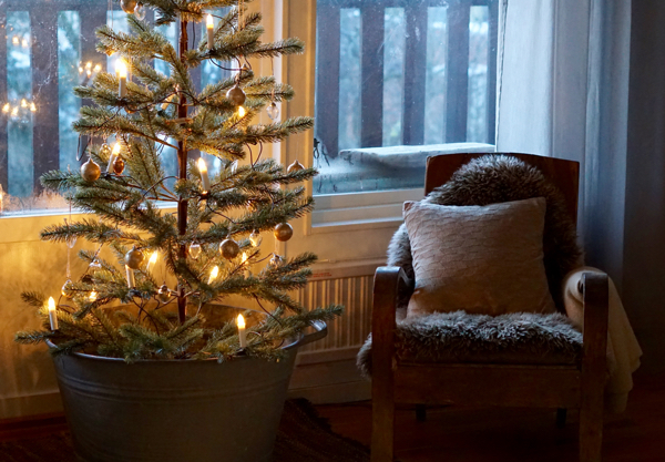 Det här trodde jag aldrig skulle hända. Vi har köpt en plastgran. Jag vet att det inte är så bra miljömässigt och det slår ju inte en riktig doftande gran på långa vägar, men med en snart ett åring som röjer vilt omkring sig så var det en gran i plast eller ingen alls. Storasystern till den vilda bebisen ville hemskt gärna ha en julgran så då fick det bli en plastgran. Nu när den är klädd så tycker jag faktiskt om den och kan absolut tänka mig att ha den i många år till. Den sticks inte, den barrar inte och en kan böja till grenarna så de passar ljusslingan och julgranspyntet perfekt.